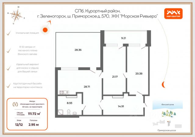 "Репин" — элитный лаунж-комплекс от RBI в Курортном районе Петербурга в посёлке Репино по адресу Приморское шоссе, 441. Шоссе считается петербургским аналогом трассы Канны Ницца Монако. Вместо пиний — сосновый лес, который сменяется открытыми морскими видами хотя и не Средиземного моря, но такого же просторного Финского залива. Проезжая по Приморскому шоссе, вы уже отдыхаете. После Репинских Пенатов дорога круто поворачивает к югу и совершает плавную дугу к западу — именно здесь в 400 метрах от залива располагаются роскошные виллы вэлнес-комплекса "Репин". Формат проживания камерный — без суеты и лишнего шума. В четырёх виллах всего 84 сити-хауса. Есть номера с палисадниками и отдельным входом, лоты с террасами и возможностью установки дровяного камина, двухэтажные юниты с двусветной кухней-гостиной, высота потолков в которой достигает 6,3 или 6,6 метров. На типовых этажах потолки 3 метра, на последнем этаже — 3,3 метра. Площадь юнитов от 45,8 до 150,7 м² — можно приобрести инвестиционный лот под сдачу в аренду или купить номер для собственного роскошного проживания. Конструкция стен продумана таким образом, чтобы вы могли реализовать перепланировку пространства вплоть до объединения соседних юнитов с сохранением высокой звукоизоляции между номерами. На территории комплекса находятся ещё два инфраструктурных корпуса — они располагаются вдоль шоссе и создают визуальный и акустический барьер для вилл. В первом корпусе находятся центральная входная группа с ресепшн и зоной ожидания гостей, ресторан с отдельным входом и wellbeing-центр, где оборудуют спортзал, бассейн, хамам и сауну. Всё, чтобы вы могли переключиться от рутины и обрести себя заново! Во втором корпусе — трёхуровневый паркинг на 60 машиномест. Ещё 10 м/м на уличной автостоянке. Все виллы — малоэтажные и размещены в шахматном порядке, чтобы вы могли наблюдать умиротворяющий пейзаж прямо из окон или с террасы своего номера. Лаконичная скандинавская архитектура вторит окружению и способствует расслаблению, а декоративная ландшафтная подсветка преображает комплекс в сумерки. Приватная охраняемая территория утопает в зелени: равнины перемежаются с живописными холмами, создавая аллюзию на пейзажный парк. Среди всей этой красоты благоустроены разнообразные лаунжи: две открытые площадки для встреч у костра и обогреваемая фуршетная зона, подиум с деревянными шезлонгами и декоративный водоём с кинетической скульптурой от Владислава Муханова и Ивана Зубарева. Дети могут играть на экологичной детской площадке во дворе, а спортсмены — заниматься на профессиональных уличных тренажёрах FOREMAN. Refresh-коплекс "Репин". Ваш источник безмятежности в лоне природы побережья Финского залива!