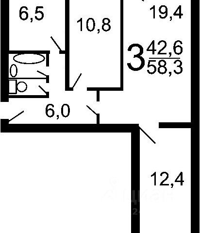 -Два санузла: гостевой (2,4 кв. м) и основной (4,2 кв. м).
