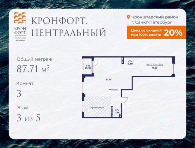 • ✓ В базе Циан 48 3-комнатных квартир без ремонта в Кронштадте