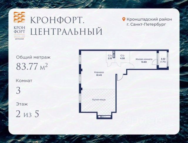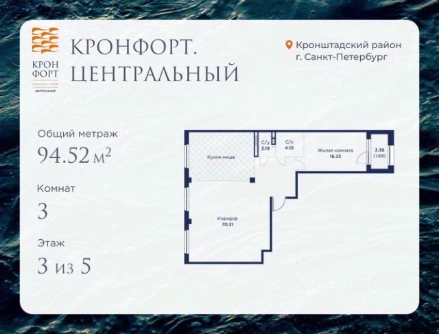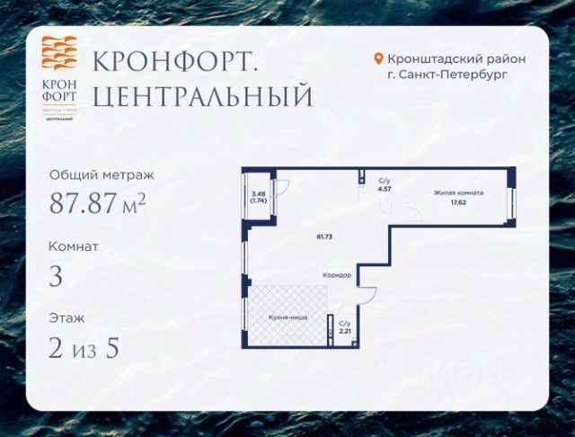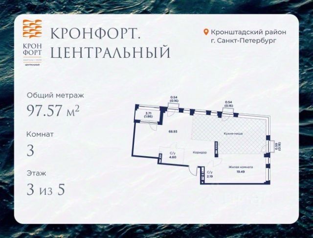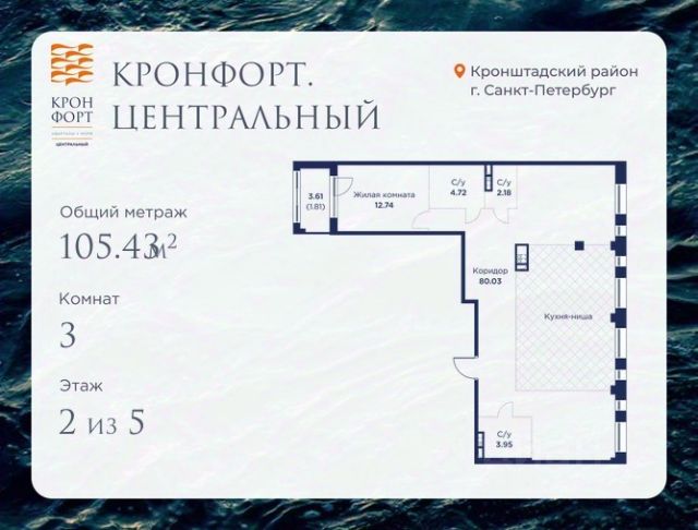 Предлагается квартира площадью 96.77 кв.м в жилом комплексе "Кронфорт. Центральный" в Санкт-Петербурге (Кронштадт). Возможна покупка с использованием льготных и специальных ипотечных программ с государственной поддержкой. Сейчас действует скидка до 25% на все квартиры во втором корпусе малоэтажного квартала, что позволяет сэкономить до 3,5 млн рублей. Акция распространяется на студии, однокомнатные и двухкомнатные квартиры, а также просторные лофты со свободной планировкой. В продаже представлены классические и евроформаты планировок. Высота потолков в квартирах — от 3 до 3,4 метров, окна увеличенного размера, есть варианты с эркерами, французскими балконами, лоджиями и террасами. Жилой квартал состоит из пяти четырехэтажных корпусов с закрытыми охраняемыми дворами, свободными от машин. Первые этажи формируют торговые променады в стиле пешеходных улиц исторической части Петербурга и Кронштадта. Внутренние пространства между корпусами — пешеходные зоны с уютными площадями. Архитектурный облик квартала разработан бюро "Проектная культура" и международной компанией Chapman Taylor. Инфраструктура комплекса включает: - Лицей с двумя бассейнами - Детский сад на 150 мест с бассейном и закрытой территорией - Веревочный парк - Игровые площадки для активного отдыха; - Кабинет врача общей практики. - Подземные паркинги с лифтами. - Мусоросборные камеры, индивидуальные кладовые. - Закрытые дворы с контролем доступа и видеонаблюдением. - Мультформатный стрит-ретейл с кафе и ресторанами. - Триатлон-центр и беговые/велодорожки. - Учебно-тренировочный комплекс для детей "Лагерь настоящих героев". Транспортная доступность обеспечивает удобный выезд на КАД (около 1-3 км), 2 минуты пешком до автобусной остановки "Лицей", 25 минут до Сестрорецка, 30 минут до "Лахта-центра", 50 минут до аэропорта "Пулково" и 60 минут до Московского вокзала. Для любителей моря доступен маршрут на "Метеоре" до центра Санкт-Петербурга. Отделка квартир предлагается как с готовой чистовой отделкой, так и со свободной планировкой без отделки для реализации индивидуальных дизайнерских решений. В третьем корпусе, продажи которого стартовали в марте 2025 года, доступны квартиры с просторными террасами, тремя балконами, кухнями-гостиными до 38 кв.м с окнами на две стороны, обеспечивающими панорамное освещение и виды. Если вам нужна помощь с оформлением ипотеки или дополнительная информация по комплексу и условиям покупки, обращайтесь в отдел продаж за консультацией.