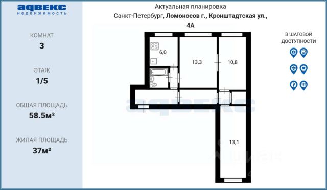 Представляем вашему вниманию 3-комнатную квартиру в кирпичном доме, в живописном городе Ломоносов. Общая площадь - 58,7 м2. Квартира была освобождена от мебели и мусора, готова к началу ремонтных работ, в которых вы сможете реализовать любые идеи и создать уникальное жилье. Раздельный санузел. Двухстороння ориентация окон, которые с одной стороны открывают красивый вид на природу, а с другой во двор. Есть балкон. Кирпичный дом. Благоустроенная территория, имеются детская и спортивная площадки. Рядом с домом находятся: парк Усадьбы Зубовых, сад Дача Шитта, парк Усадьбы Дубки. Наличие множества зеленых зон создает благоприятную атмосферу для здоровья и отдыха, прогулки по паркам и лесам способствуют физической активности и психологическому комфорту. В 10 минутах езды вся необходима инфраструктура: магазины, детская и взрослая поликлиники, школы, детские сады, кафе. Хорошая транспортная доступность: в 7 минутах ходьбы расположена остановка общественного транспорта, в 15 минутах ж/д станция Кронштадская Колония, в 5 минутах езды на машине - выезд на КАД. Без обременений. Два совершеннолетних собственника. Укажем полную стоимость в договоре. Подходит под ипотеку. Звоните ежедневно, мы вас ждем!