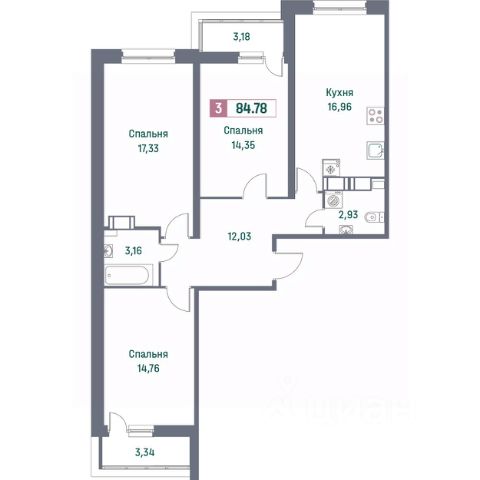 Продаётся 3-комн. квартира площадью 79,49 кв.м на 3 этаже 14 этажного дома (Корпус 4, Секция 3) проекта ПИК Заречный парк. Светлый просторный подъезд на уровне земли, функциональная планировка, большие окна, без отделки. Жилой квартал "Заречный парк" расположен в районе Новое Девяткино Ленинградской области. В 7 минутах на автомобиле - станция метро "Девяткино", до КАД - 10 минут на машине. В 2026 году будет достроена шестиполосная трасса в обход Мурино, примыкающая к Пискарёвскому проспекту. Она станет дополнительным выездом на КАД для жителей "Заречного парка". Проект включает восемь домов высотой от 15 до 24 этажей, три многоуровневых паркинга, детский сад и школу. В зелёных дворах-парках будут оборудованы современные детские и спортивные площадки, обустроены места для отдыха. На первых этажах разместятся магазины, кафе и другие сервисы. Планировки продуманы так, чтобы каждый квадратный метр жилой площади можно было эффективно использовать. Все квартиры сдаются с готовой отделкой. Артикул 1060326 (Застройщик ООО "СПЕЦИАЛИЗИРОВАННЫЙ ЗАСТРОЙЩИК ИНВЕСТАЛЬЯНС") [cn_sbp_1848977]
