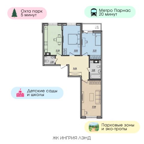 Продается 3-к квартира без отделки в ЖК "Ягодное Река Парк". Общая площадь квартиры — 86.5 кв. м, этаж 6 из 12. Тип дома — монолитный. Цена указана при 100% оплате. Новый масштабный проект на востоке Санкт-Петербурга, в динамично развивающемся городе Мурино. Современный и экологичный жилой квартал возводится на живописном берегу реки Охта, возле пересечения Пискаревского проспекта с КАД. Ягодное Река Парк — это тщательно продуманная городская среда, созданная для свободы выбора. Развлечения, спорт, прогулки, отдых, забота о себе и своей семье — здесь все возможности находятся в шаговой доступности. В жилом квартале гармонично сочетаются современная архитектура, преимущества развитой инфраструктуры и масштаб живой природы. Концепция проекта ориентирована на удобство и высокое качество жизни. Архитектура квартала выполнена в сдержанном современном стиле, а натуральная цветовая палитра с акцентами органично сочетается с окружающим ландшафтом. Композицию дополняют уютные закрытые дворы, авторский ландшафтный дизайн и невысокая этажность. Полное отсутствие квартир-студий позволяет каждому жителю Ягодное Река Парк создать функциональные пространства, в которых можно уединиться и насладиться тишиной. На территории нового жилого квартала Ягодное Река Парк продумана собственная инфраструктура. В рамках проекта планируется строительство школ и детских садов. Рядом с домом будут торгово-развлекательные центры, физкультурно-оздоровительный комплекс с бассейном, детско-юношеская спортивная школа, а также разные образовательные, медицинские и другие социальные учреждения. Параллельно реализуются крупные муниципальные транспортные проекты, включающие новые дороги и развязки.