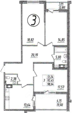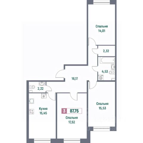 Все комнаты и кухня - широкие, более 2,9 м., удобные для зонирования пространства и расстановки мебели. Комнаты светлые, смежно-изолированные 12,0 + (17,9 + 13,6) м?; кухня - 6,4 м?. Санузел раздельный. Объемная прихожая.