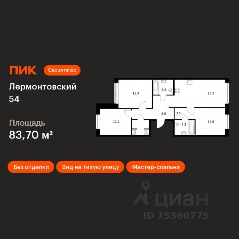 Продаётся 3-комн. квартира площадью 79,8 кв.м на 6 этаже 9 этажного дома (Корпус 2.2, Секция 11) проекта ПИК Лермонтовский 54. Светлый просторный подъезд на уровне земли, функциональная планировка, большие окна, без отделки. "Лермонтовский 54" находится в центре Санкт-Петербурга на набережной Обводного канала, в 5 минутах пешком от метро "Балтийская". Здесь будут квартиры с окнами в пол, высокими потолками и террасами. Жилой квартал находится в центре Санкт-Петербурга, в Адмиралтейском районе, на набережной Обводного канала. В 5 минутах пешком - станция метро "Балтийская". До Невского проспекта на автомобиле ехать 8 минут, до Московского проспекта - всего 2 минуты. Необычные фасады "Лермонтовского 54" напоминают о промышленной архитектуре, которая была популярна в Санкт-Петербурге в конце XIX и начале XX века. Материал отделки - прочный кирпич, который прослужит до 100 лет. А благодаря системе чиллер-фанкойл на фасадах не будет блоков кондиционеров - всё охлаждение происходит внутри здания. В "Лермонтовском" возводятся дома высотой от 7 до 9 этажей с небольшим количеством квартир: на этаже может быть всего две квартиры. Во дворах будут закрытые парки с детскими площадками и местами для отдыха, а на подземном этаже - паркинг с удобной навигацией. Между домами протянется пешеходный бульвар для прогулок и отдыха, для велосипедистов предусмотрены специальные дорожки и парковки. В 2024 году в "Лермонтовском 54" открылся лицей на 1000 мест. Он разместился в здании 1824 года - раньше здесь было Николаевское кавалерийское училище. Во всех квартирах будут трёхметровые потолки и окна в пол. На первых этажах откроются магазины, кафе и другие сервисы. Со стороны набережной в домах, которые признаны объектами культурного наследия, мы разместим общественные пространства. Недалеко от "Лермонтовского 54" находится Юсуповский дворец, парк Екатерингоф, на машине можно доехать до острова Новая Голландия и Мариинского театра. Рядом работают школы, детские сады, торговые центры и гипермаркеты. Артикул 921576 (Застройщик ООО "СПЕЦИАЛИЗИРОВАННЫЙ ЗАСТРОЙЩИК "АЛЬМАНДИН") [cn_sbp_1812664]