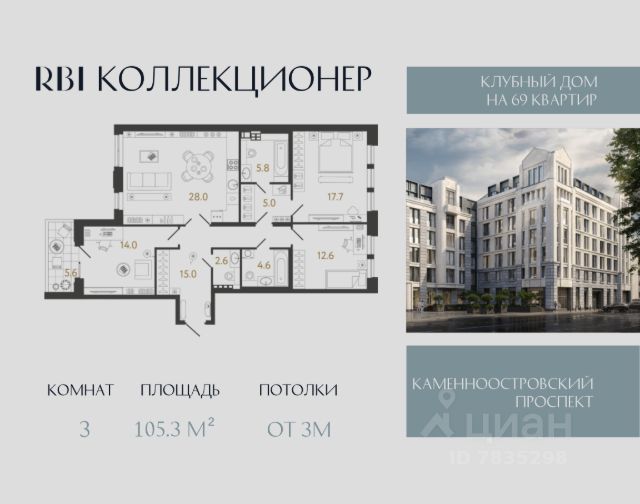 "Коллекционер" — клубный дом от RBI на 69 коллекционных квартир с террасами и люкарнами в Петроградском районе Петербурга на улице Чапыгина. Здесь роскошь пустоты и камерного уединения, воплотившаяся в модернистской архитектуре с элементами ар-деко, рождает новые вечные смыслы. Окружение располагает: среди роскошных доходных домов XIX века и уютных садов Петроградской стороны, которые хранят память былых столетий, пробуждается особое внутреннее стремление создавать новое, неподвластное времени. Средняя площадь квартир в проекте — 85,3 м². В коллекционной квартирографии выделяются исключительные лоты: 9 квартир с люкарнами и террасами, 4 из которых — двухуровневые, 2 из них — с двусветной гостиной и потолками до 6,4 м. В башнях-доминантах, которые проглядываются с Каменноостровского проспекта, ещё две уникальные квартиры: здесь потолки в кухне-гостиной достигают высоты 3,75 м. Все квартиры продаются без отделки. Окна и балконы — алюминиевые с накладками из натурального дерева внутри квартиры. Со стороны улицы Чапыгина коллекционеров и их гостей встречает парадный курдонёр с лаунж-зоной на открытом воздухе. Войдя в дом, вы попадаете в роскошное лобби, где за изящной стойкой ресепшн вас приветствует хостес. В центральной входной группе предусмотрели кофепоинты — чтобы в уютной зоне ожидания вы могли пообщаться с подругой за чашечкой свежесваренного эспрессо. Для деловых переговоров и интеллектуальных дискуссий — переговорные комнаты, которые может забронировать каждый из жителей. Направляясь из лобби во вторую секцию дома "Коллекционер", вы попадаете в анфиладную галерею в духе античной пинакотеки. Здесь каждый день вы можете вдохновляться глубокими акварелями Латифа Казбекова и скульптурными симфониями Виктора Грачёва — пространство healing arts у вас дома. Чтобы вы могли наполняться энергией и созерцать природную гармонию в приватной обстановке, во внутреннем дворе обустроили двухуровневое патио. Здесь, среди горных сосен, изысканных гортензий и клёнов, предусмотрели всё для зарождения вашей новой коллекции впечатлений: беседки под навесом — для сосредоточенной работы, уединённые лаунжи — для камерного общения и отдыха, качели-гнёзда за живой изгородью — для погружения в глубину своих мыслей, игровые площадки от Richter RUS — для счастливого детства ваших детей. Извилистые грунтовые дорожки ассоциируются с дворцово-парковыми ансамблями пригородов Петербурга и деликатной роскошью императорских резиденций. На всей территории сада — свободный Wi-Fi. Попасть сюда могут только жители по электронному цифровому ключу. Для жителей оборудуют подземный паркинг на 57 м/м, 10 из которых — с зарядкой для электромобилей. На втором этаже предусмотрены кладовые — их всего 45, они докупаются отдельно. "Коллекционер". Ваша коллекция впечатлений