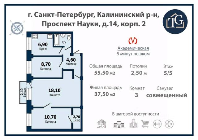 В свободной продаже просторная, тихая трехкомнатная квартира. Удобная для проживания семьи с детьми. Дом расположен во дворе, вдали от городской суеты. Для вашего автомобиля всегда найдется место на просторной парковке. Трехсторонняя планировка: квадратная кухня 7 кв.м., комнаты правильной формы, светлые и теплые: 13,5 + (18 + 17,5) м.кв. Окна выходят на три стороны в тихий зеленый двор. Квартира свободна, никто не зарегистрирован, требуется ремонт. Спокойные, тихие соседи. Чистая парадная, пассажирский лифт, парадная закрыта, работает домофон. Идеальное место для проживания в спокойном зеленом районе города. Дом расположен в районе с развитой инфраструктурой. Во дворе много зелени и мест для прогулок. Рядом находятся два детских садика и школа, спортивные площадки, сетевые продуктовые магазины, стоматология, аптека, а также музыкальная школа. Рядом Муринский парк — организованы зоны для отдыха, прогулок, велосипедов, роликов и лыж, а через дорогу Северпарк, новый спортивный центр для всей семьи. Удобное транспортное сообщение - в пешей доступности ж/д станция Ручьи с удобным сообщением с пригородами Приозерск, Сосново, Токсово и центром города (Финляндский вокзал). Недалеко от дома остановки общественного транспорта, а также удобные автомобильные развязки, доехать до КАД (5 мин) и ЗСД (15 мин), возможность попасть в любой район Санкт-Петербурга без пробок. До метро Академическая пешком 30 минут или несколько остановок на общественном транспорте. Квартира в собственности одной семьи с момента постройки дома, сейчас один собственник. Возможна ипотека, субсидия, покажем рыночную стоимость квартиры в договоре. Для покупки квартиры одобрена ипотека ПАО Сбербанк, предоставляется скидка 0,3% от ставки по ипотеке.