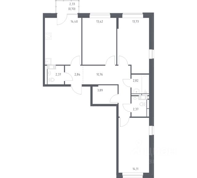 В продаже 3-комнатная квартира в корпусе 39 ЖК 'Живи! В Рыбацком'. Квартира располагается на 2 этаже, общая площадь 75.54 м2.