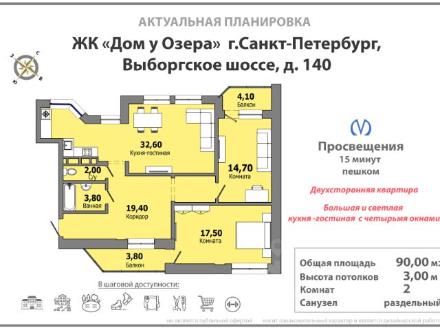 Продаётся 3-комнатная квартира в строящемся доме по адресу ул. Береговая, дом 12, ЖК "Loft у Озера". ЖК расположен в Выборгском районе Санкт-Петербурга, МО Шувалово-Озерки, в 300-х метрах от Большого Суздальского озера. До метро Проспект Просвещения и метро Озерки 8 минут на машине. ДОМ СДАН Проектное финансирование строительства осуществляет ПАО "СБЕРБАНК". Застройщик ООО "СЗ "ИНТЕСКОМ". Жилой комплекс "Loft у Озера" аккредитован в 13- банках Квартира общей площадью 93,75 м2 расположена на 2-м этаже. 4Е планировка. Отделка черновая. Высота потолков 2,85 м. Кухня-гостиная 21,50 м2. Квартира трехсторонняя. Два санузла. Два балкона-веранды с панорамным остеклением. Площадь первого балкона-веранды - 6,93 м2, ширина 1,45 м. Площадь второго - 8,95 м2, ширина 1,48 м. ЖК "Loft у Озера" это уникальный клубный проект бизнес-класса с авторской архитектурой в стиле LOFT, расположенный в самой живописной и элитной части Выборгского района Петербурга. Состоит из двух домов: Дом 8 на 16 квартир и Дом 12 на 59 квартир. 5 ПРИЧИН ВЫБРАТЬ ЖК Loft у Озера: 1. СТИЛЬНАЯ АРХИТЕКТУРА проекта в стиле Loft 2. УЕДИНЕННАЯ АТМОСФЕРА клубного дома 3. ЗЕЛЕНАЯ ЛОКАЦИЯ В МЕГАПОЛИСЕ 4. СМАРТ ПРОСТРАНСТВО внутреннего двора 5. СОВРЕМЕННЫЕ РЕШЕНИЯ ЖК бизнес-класса ОСОБЕННОСТИ ЖК "Loft у Озера": БЛАГОУСТРОЙСТВО: закрытая охраняемая территория двора с ландшафтным дизайном, открытыми парковками. Спортивная площадка с теннисным столом, чилл зона с шезлонгами, территория для отдыха взрослых, место для работы и общения, детская площадка, велопарковки. ПОДЗЕМНЫЙ ПАРКИНГ на 31 машиноместо располагается в доме 12. Машиноместа продаются как отдельные объекты недвижимости. Вход в паркинг отдельный. Лифт в подземный паркинг не предусмотрен. КЛАДОВЫЕ ПОМЕЩЕНИЯ площадью от 2,4 до 10,2 м2 расположены в доме 12. ПАТИО. Все квартиры на 1-х этажах имеют выход на площадку для отдыха возле дома, огороженную живой изгородью. БАЛКОНЫ - ВЕРАНДЫ во всех квартирах. Площадь от 7,5 до 9,5 м2. Глубина от 1.4 до 2 м. ПАНОРАМНОЕ ОСЕКЛЕНИЕ балконов. Увеличенные окна. Классические и ЕВРО ПЛАНИРОВКИ. Кухни от 11 до 23 м2. 46 см толщина наружных стен. УСИЛЕННАЯ ЗВУКОИЗОЛЯЦИЯ в межэтажных перекрытиях. БЕЗБАРЬЕРНАЯ СРЕДА: Все лифты грузовые. Входы в подъезды и входы в лифты располагаются на уровне земли. Не нужно подниматься по ступеням, чтобы попасть в дом или в лифт. ТЕХНОЛОГИЧНЫЕ РЕШЕНИЯ: зарядное устройство для электронных приборов во дворе, зарядная станция для электромобилей, Wi-Fi покрытие дворовой территории, оптоволокно до дверей каждой квартиры, умный доступ во двор и в дом.