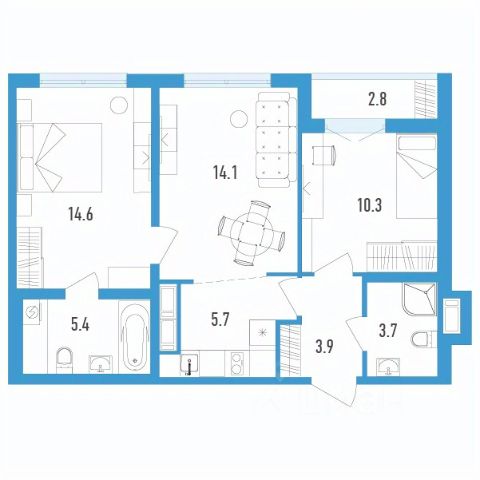 — Функциональная планировка на две стороны, просторная кухня 14,85 кв.м., три комнаты: ( 12,04 +13,73+13,4 кв.м.), два совмещенных санузла и вместительная гардеробная 4,31 кв.м.)