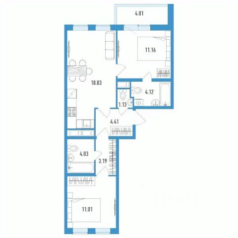 Продаётся 3-комнатная квартира в строящемся доме (Дом 1), срок сдачи: I-кв. 2026, общей площадью 60.1 кв.м., на 11 этаже.