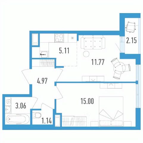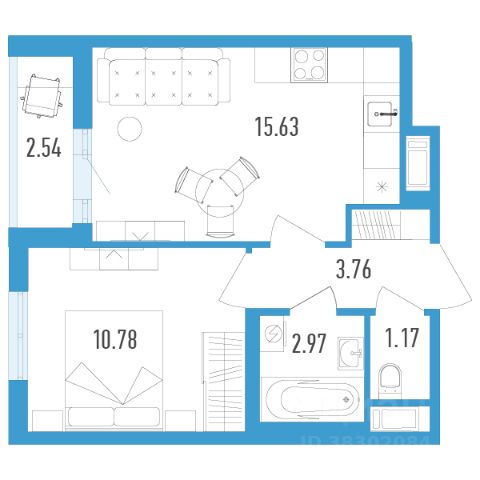 Продаётся 1-комнатная квартира в строящемся доме (Дом 1), срок сдачи: I-кв. 2026, общей площадью 32.76 кв.м., на 15 этаже.