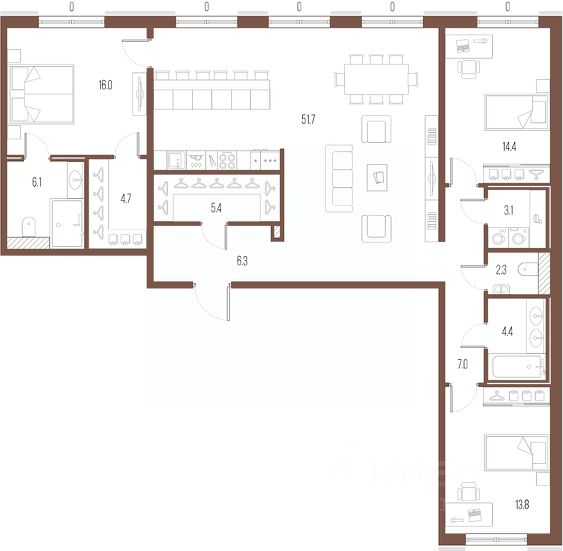 Продаётся 3-комн. квартира площадью 86,7 кв.м на 5 этаже 7 этажного дома (Корпус 2.1, Секция 1) проекта ПИК Лермонтовский 54. Светлый просторный подъезд на уровне земли, функциональная планировка, большие окна, без отделки. "Лермонтовский 54" находится в центре Санкт-Петербурга на набережной Обводного канала, в 5 минутах пешком от метро "Балтийская". Здесь будут квартиры с окнами в пол, высокими потолками и террасами. Жилой квартал находится в центре Санкт-Петербурга, в Адмиралтейском районе, на набережной Обводного канала. В 5 минутах пешком - станция метро "Балтийская". До Невского проспекта на автомобиле ехать 8 минут, до Московского проспекта - всего 2 минуты. Необычные фасады "Лермонтовского 54" напоминают о промышленной архитектуре, которая была популярна в Санкт-Петербурге в конце XIX и начале XX века. Материал отделки - прочный кирпич, который прослужит до 100 лет. А благодаря системе чиллер-фанкойл на фасадах не будет блоков кондиционеров - всё охлаждение происходит внутри здания. В "Лермонтовском" возводятся дома высотой от 7 до 9 этажей с небольшим количеством квартир: на этаже может быть всего две квартиры. Во дворах будут закрытые парки с детскими площадками и местами для отдыха, а на подземном этаже - паркинг с удобной навигацией. Между домами протянется пешеходный бульвар для прогулок и отдыха, для велосипедистов предусмотрены специальные дорожки и парковки. В 2024 году в "Лермонтовском 54" открылся лицей на 1000 мест. Он разместился в здании 1824 года - раньше здесь было Николаевское кавалерийское училище. Во всех квартирах будут трёхметровые потолки и окна в пол. На первых этажах откроются магазины, кафе и другие сервисы. Со стороны набережной в домах, которые признаны объектами культурного наследия, мы разместим общественные пространства. Недалеко от "Лермонтовского 54" находится Юсуповский дворец, парк Екатерингоф, на машине можно доехать до острова Новая Голландия и Мариинского театра. Рядом работают школы, детские сады, торговые центры и гипермаркеты. Артикул 920990 (Застройщик ООО "СПЕЦИАЛИЗИРОВАННЫЙ ЗАСТРОЙЩИК "АЛЬМАНДИН") [cn_sbp_1731747] Продам 3-комнатную квартиру с двумя санузлами в Санкт-Петербурге.