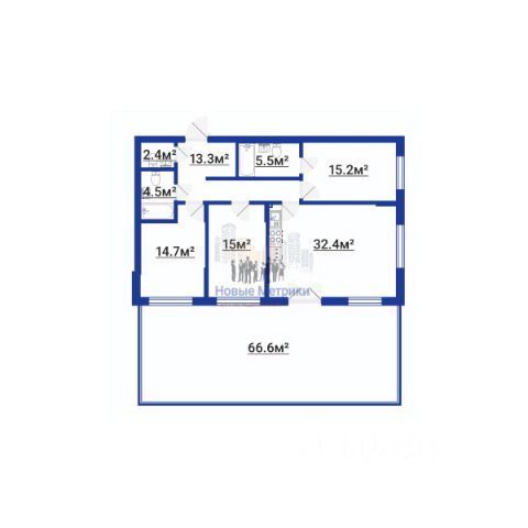 Планировка включает в себя: мастер спальня 15, 2м2 с собственной ванной комнатой 5, 5м2, две отдельные комнаты 15, 0м2 и 14, 7м2, вторая ванная комната 4, 5м2 и гостевой санузел 2, 4м2, в прихожей 13, 3м2 есть возможность организовать гардеробную (около 3, 1м2) по коридору попасть в кухню-гостиную 32, 4м2 с собственным выходом на террасу 66, 6м2.