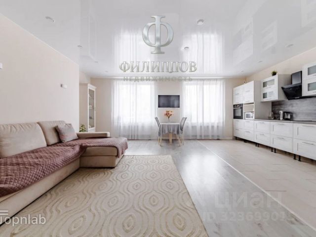— просторная кухня, совмещенная с гостиной (благодаря удобной перепланировке)