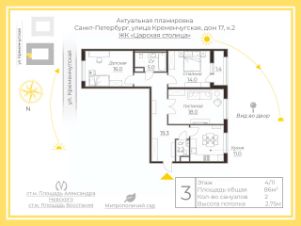 У дома самый большой внутренний двор среди домов ЖК "Царская столица". Единственный подъезд в ЖК "Царская столица", где из окон 3-х комнатных квартир виден салют, запускаемый в городские праздники, пролет военной авиации во время парадов. Глядя в окна квартиры Вы никогда не будете смотреть в телевизор своих соседей, большая жилая площадь квартиры.
