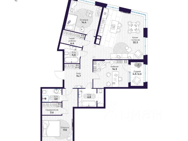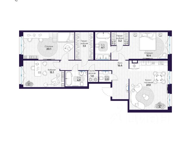 Арт. 117689427 Квартира с тремя спальнями в новом доме бизнес-класса у метро "Черная речка". Оптимальное соотношение площади, количества комнат, уровня ремонта и локации! Основные характеристики квартиры: Общая площадь 83 м2 Кухня-гостиная 26,3 м2 Спальня с гардеробной 17,1 м2 Детская комната 15,8 м2 Детская или кабинет 12,5 м2 Два санузла с душевой кабиной и ванной Гардеробная с постирочной 3 м2 Лоджия 3,3 м2 Чтобы не потерять - добавьте в избранное или отправьте тому, кого эта квартира может сделать счастливым! Квартира полностью меблирована и оборудована всей необходимой для современной жизни техникой. В том числе кондиционерами. Высокий этаж с видом на Лахта-центр и перспективу города. Благодаря большим окнам, квартира действительно очень светлая. Квартира расположена в квартале "ЦДС Черная речка". Это новый современный микро-район со всей необходимой инфраструктурой в 10 минутах езды от центра города. Ухоженная территория, современные фасады, красивые входные группы. Много коммерции, есть все, что необходимо - от кафешек до супермаркетов, детских развивашек, салонов красоты, зоомагазинов и прочего. Все это в радиусе 5 минут пешком! Дворы закрыты от машин и посторонних людей. В них есть детские площадки, зоны отдыха и спортивные площадки, что важно для семей с детьми. На территории комплекса своя школа и детский сад. Вы точно оцените исключительную транспортную доступность этого квартала! 10 минут пешком до метро "Черная речка" и "Лесная". 10 минут на машине до Петроградской стороны и выезда на ЗСД. Если вы хотите жить в стильной квартире в новом современном квартале рядом с центром города - звоните и приходите на просмотр квартиры!