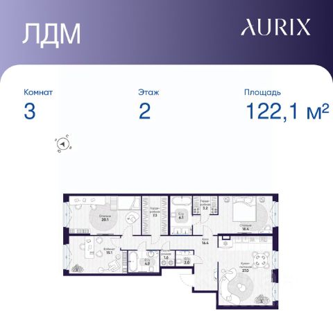 Продается 3-к квартира без отделки в ЖК "ЛДМ". Общая площадь квартиры — 122.1 кв. м, этаж 2 из 8. Тип дома — монолитный. Цена указана при 100% оплате.