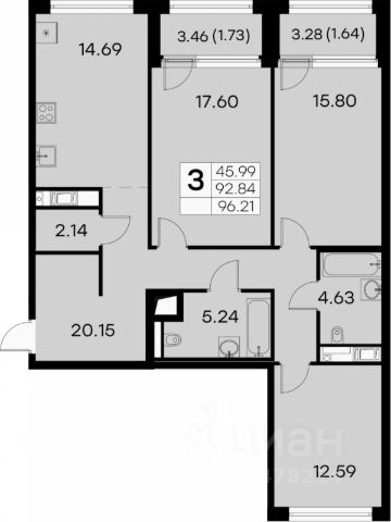 Просторная трехкомнатная квартира в Клубный квартал "Ассамблея" на 6 этаже. Квартира без отделки, новый владелец может сделать ремонт по своему проекту. Общая площадь: 110.1 кв.м., жилая: 52.91 кв.м., площадь просторной кухни-столовой: 24.04 кв.м. Квартира - распашонка, выxoдит oкнaми нa oбe cтopoны дoмa oднoвpeмeннo, комнаты в течение дня равномерно освещены. В квартире один балкон, два совмещенных и один раздельный санузел. Высота потолков 3.0 м.