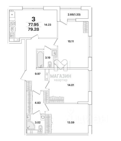 • ✓ В базе Циан 66 элитных 3-комнатных квартир рядом с метро Гражданский проспект