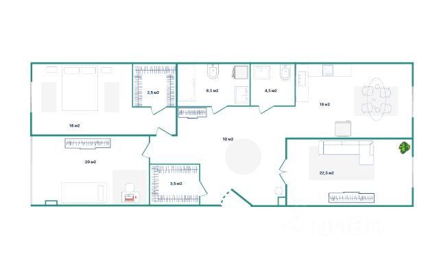 - Две изолированные спальни - 17 и 16, кв.м.,оборудованы гардеробными комнатами -3,5 кв.м., очень практично и разумно, функционально.