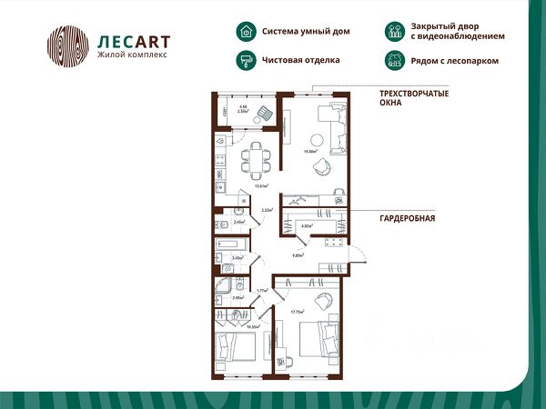 Продаётся 3-комнатная квартира 236, общей площадью 91.72 кв.м., на 12. Дом комфорт-класса, 12 этажей, в окружении леса и малоэтажной застройки. Проект с умным домом. Передача квартир в феврале 2025г. РАСПОЛОЖЕНИЕ И БЛАГОУСТРОЙСТВО Расположение ЖК "ЛесART" порадует любителей чистого воздуха — рядом находятся лесопитомник и Шунгеровский заказник. Особенность комплекса это его ART дворы, которые оформлены по мотивам произведений Василия Кандинского, Пита Мондриана и Пабло Пикассо. Дворы закрыты от машин, что обеспечивает безопасность детей и взрослых. Для семей с детьми особенно удобно наличие детского сада и школы прямо во дворе комплекса. На первом этаже расположены магазины, маркетплейсы, кофейни и всё что необходимо для повседневной жизни. Холлы - это продуманные пространства с колясочными, сквозными проходами и приятной музыкой в лифтах. СИСТЕМА УМНОГО ДОМА В КАЖДОЙ КВАРТИРЕ - Комфорт. Управление освещением, мультимедиа и климат-контролем. - Безопасность. Видеонаблюдение и мониторинг систем безопасности. - Экономия. Контроль систем и оптимизация энергопотребления. - Удобство. Управление с помощью мобильного телефона. ГК "ЕДИНО" Входит в тройку компаний-лидеров региона по потребительским качествам жилых комплексов, объемам ввода жилья и объемам текущего строительства. В цифрах: - 23 года на рынке - Более 50 построенных домов - 60 000+ счастливых обладателей квартир ПРЕИМУЩЕСТВА ПОКУПКИ В ЖК "ЛЕСART": - Сниженная ставка по семейной ипотеке от 5,5%; - Рассрочка без переплаты; - Обмен старой квартиры на новую без комиссии; - Возможность использовать материнский капитал; ЗАПИСЫВАЙТЕ НА ПРОСМОТР! Мы ждем Вас в нашем уютном шоуруме. Вы увидите отделку, дизайнерские решения и познакомитесь со сценариями Умного дома! Такси до офиса продаж и обратно БЕСПЛАТНО!