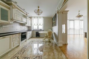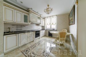 На кухне 12.1м2 кух. гарнитур с подсветкой рабочей зоны, итальянская плита и духовой шкаф, немецкий холодильник, обеденный стол овальный (раздвижной) из натурального дерева. Выход из кухни на Эркер 8 м2 это 4я комната утеплена, пол с подогревом и кондиционер. Можно использовать как кабинет или спорт.зал