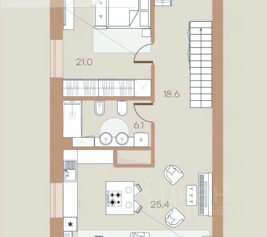 - Две изолированные спальни, просторная гостиная, изолированная кухня.