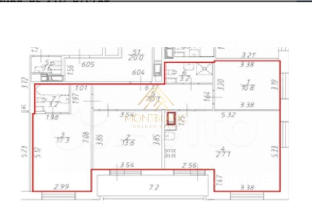 3 изолированные комнаты: 10,8, 13,6, 17,3 м2.