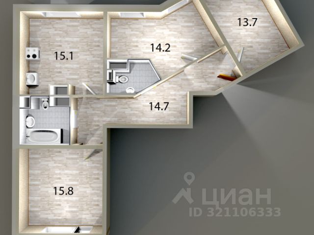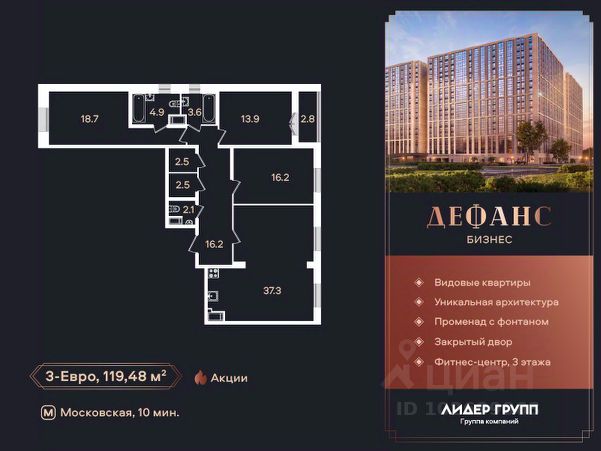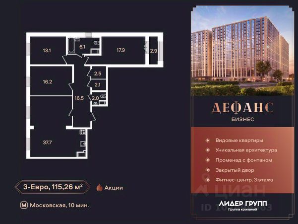 Арт. 110098549 Предлагаем Вашему вниманию 3-х комнатную уникальную квартиру в ЖК "Доминанта".