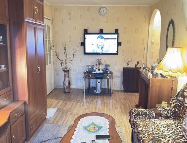 Общая площадь квартиры 46,4 кв.м, кухня 6,5 кв.м, комнаты смежные 7 кв.м , 10 кв.м, 15 кв.м, туалет, кладовая.