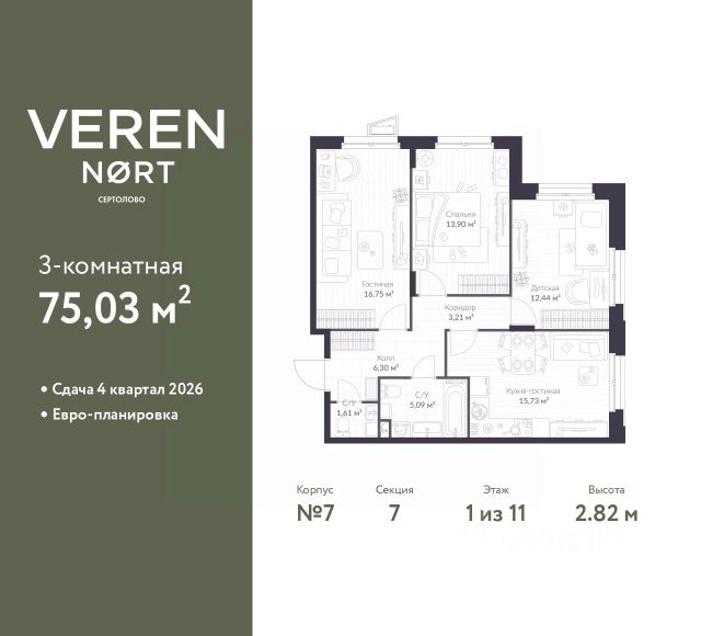 Продаётся 3-комн. квартира площадью 63 кв.м на 1 этаже 24 этажного дома (Корпус 6, Секция 1) проекта ПИК Заречный парк. Светлый просторный подъезд на уровне земли, функциональная планировка, большие окна, c отделкой. Жилой квартал "Заречный парк" расположен в районе Новое Девяткино Ленинградской области. В 7 минутах на автомобиле - станция метро "Девяткино", до КАД - 10 минут на машине. В 2026 году будет достроена шестиполосная трасса в обход Мурино, примыкающая к Пискарёвскому проспекту. Она станет дополнительным выездом на КАД для жителей "Заречного парка". Проект включает восемь домов высотой от 15 до 24 этажей, три многоуровневых паркинга, детский сад и школу. В зелёных дворах-парках будут оборудованы современные детские и спортивные площадки, обустроены места для отдыха. На первых этажах разместятся магазины, кафе и другие сервисы. Планировки продуманы так, чтобы каждый квадратный метр жилой площади можно было эффективно использовать. Все квартиры сдаются с готовой отделкой. Артикул 972926 (Застройщик ООО "СПЕЦИАЛИЗИРОВАННЫЙ ЗАСТРОЙЩИК ИНВЕСТАЛЬЯНС") [cn_sbp_1705595]