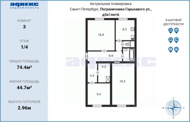 Продается уютная трехкомнатная квартира в Санкт-Петербурге по адресу Петергофское шоссе, 1к1. Квартира расположена на 1 этаже 9-этажного панельного дома, построенного в 1978 году. Четыре взрослых собственника, собственность с 2002г. Встречная покупка. Возможна покупка в ипотеку. Юридическая чистота объекта гарантирована, обременений и долгов нет. Площади: общая, с учетом лоджии - 60,9 кв.м; общая - 59,8 кв.м жилая - 42,8 кв.м; кухня - 6,2 кв.м. с теплым полом. Плита газовая. Квaртира двусторонняя (запад-восток). Высота потолков — 2,55 метра. Комнаты смежно-изолированные - 11,7 + (13,3 с выходом на утепленную лоджию + 17,8) кв.м. Вид из окон в зеленый двор. На застекленной лоджии площадью 2,2 кв.м. проведён тёплый пол, установлены раздвижные решетки. Раздельный санузел. В ванной и туалете кафельная плитка, новая сантехника. В туалете установлены гигиенический душ и раковина. Есть бойлер. Пол в комнатах - ламинат и паркетная доска, в прихожей кафельная плитка. Просторная прихожая 7,5 кв.м. В коридоре установлена система "тёплый пол", встроенные зеркальные шкафы. Инфраструктура района прекрасно развита: в шаговой доступности находятся общеобразовательная школа, школа экономики и права, детские сады, что делает это место идеальным для семей с детьми. Также есть всё необходимое для комфортного проживания: сетевые магазины: "Пловдив", "Максидом" Пятёрочка ", "Перекресток ", ТК Фиолент. Для досуга в непосредственной близости рестораны и кафе, Приморский и Полежаевский парки, Дудергофский канал, рядом Петергоф (25минут), Финский залив. Транспортная доступность: в равной удаленности три станции метро (Автово, Ленинский проспект, Ветеранов), выезд на КАД , в 2025 году открывается метро Юго-Западная (15-20мин) пешком.