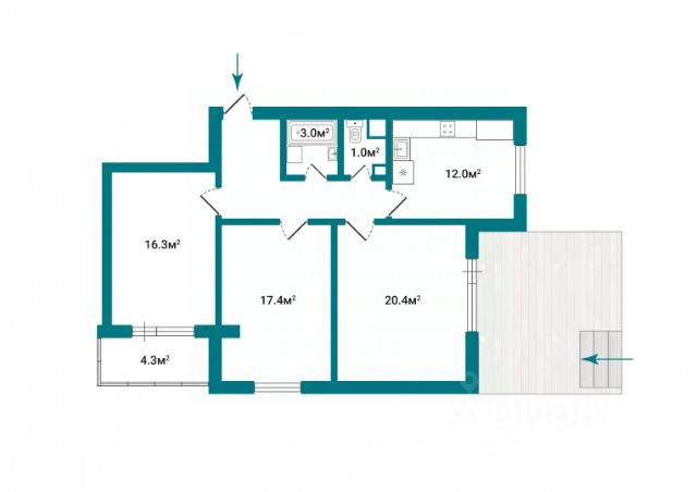 Главная прелесть этой квартиры -ТЕРРАСА, она в собственности, о чем есть отдельный документ.