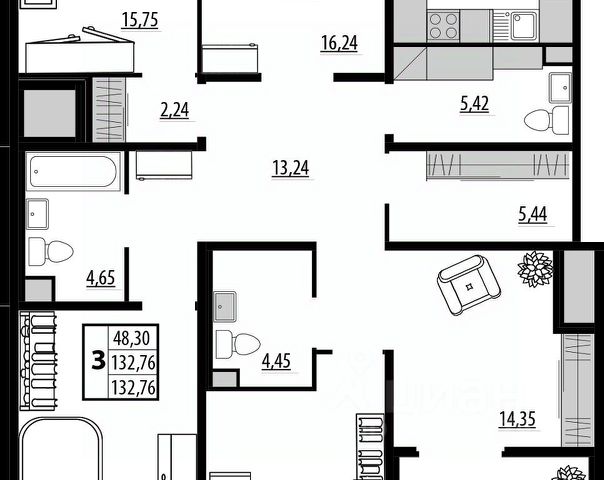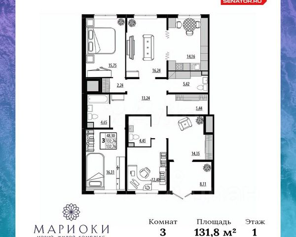 Продается просторная 3-комнатная квартира площадью 131,8 кв. м. с собственным отдельным входом с уровня земли. Расположена в ЖК "Мариоки" на 1 этаже из 8. Важное преимущество — квартира единственная на этаже, остальные помещения — коммерческие, без общих входов, что обеспечивает максимальную приватность. Планировочные решения и особенности: - фактически квартира может использоваться как 4-комнатная; - 3 санузла, один из которых можно оборудовать душевой; - предусмотрены помещения под гардеробную, кладовую или даже небольшую библиотеку; - несколько встроенных ниш для шкафов и стеллажей; - комнаты правильной формы, без лишних выступов, удобны для зонирования и размещения мебели; - возможна перепланировка: объединение кухни и комнаты в просторную кухню-гостиную до 30 м². Дополнительные преимущества: - высота потолков 3,5 м — простор и воздух; - линейная планировка и сбалансированные оконные проемы на разные стороны обеспечивают максимум естественного света и свежего воздуха; - торцевая стена выполнена из трёхслойных сэндвич-панелей, что делает квартиру особенно теплой и тихой; - окна выходят во двор — можно наблюдать за детьми, которые играют на площадке; - большая площадь квартиры положительно сказывается на микроклимате внутри. Эта квартира подойдёт как для жизни большой семьи, так и для инвестиций в аренду — редкое сочетание уюта, функциональности и приватности. Запишитесь на просмотр и убедитесь сами, что этот вариант выделяется на фоне других предложений. Квартира продается напрямую от застройщика.