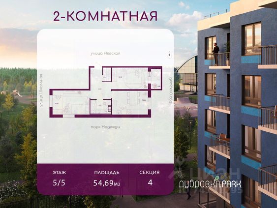 Жилой комплекс, Жилой комплекс "Дубровка.Park" это современный монолитно-кирпичный комплекс от застройщика ГК "ЛенОблСтрой 47", расположенный в живописном поселке Дубровка Ленинградской области по адресу: Школьная улица, 2.