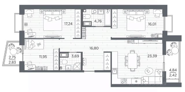 Трехкомнатная квартира с предчистовой отделкой в ЖК "RESPECT" на 10 этаже. Общая площадь: 97.09 кв.м., жилая: 45.2 кв.м., площадь просторной кухни-столовой: 23.39 кв.м. Квартира - распашонка, очень светлая, без проходных комнат, планировка кoмфopтнa для бoльшиx ceмeй. В квартире два балкона, два совмещенных санузла. Высота потолков 2.7 м. Квартира будет сдана с отделкой WHITE BOX, в которую включены следующие виды работ: - заливка стяжки; - установлена система отопления квартиры; - подготовлены потолки; - все стены выровнены, загрунтованы и отштукатурены; - электрическая проводка разведена по комнатам. Квартира будет готова к чистовой отделке. Дом монолитный, многоподъездный, переменной этажности, от 10 до 13 этажей. Квартира находится в 1-й секции высотой 13 этажей в корпусе 3.2. На этаже 5 квартир. В подъезде 1 пассажирский и 1 грузовой лифт. Начало строительства - 3 квартал 2025 года. Окончание строительства - 4 квартал 2027 года. Оформление сделки по договору долевого участия. В шаговой доступности от жилого комплекса находятся станции метро (расстояние по прямой): "Лесная" (800 м), "Площадь Мужества" (1.4 км), "Выборгская" (1.9 км), также недалеко от этого корпуса расположены станции метро: "Академическая", "Политехническая". Жилой квартал "RESPECT" строится на Полюстровском пр, 87, в одной из самых востребованных локаций Петербурга. В 10 минутах пешком - метро "Лесная" и в 10 минутах на транспорте - Петроградская сторона. Высота домов от 7 до 13 этажей. Квартиры сдаются с отделкой white box и с чистовой отделкой. На территории Respect строится школа на 1125 учащихся и детский сад на 240 мест. Запроектированы собственная газовая котельная, закрытая территория, дворы без машин и подземные паркинги с лифтами. В проекте предусмотрены трапециевидные балконы или остекленные лоджии, которые, с одной стороны, исключают монотонность фасада, являясь декоративными элементами, с другой дополнительным функциональным пространством в квартирах. Цветовая гармония фасадов каждого дома раскрывает характер квартала. Коричневый цвет клинкерного кирпича со структурой водяных штрихов — цвет уюта и безопасности, сдержанности и надёжности. Вентилируемые фасады облицованы клинкерным кирпичом. Его высокая прочность позволяет давать 100 лет гарантии на этот материал. Водопоглощение клинкерного кирпича составляет менее 5%, за счет чего у него высокая теплопроводность и прочность. В квартале запроектированы внутренние закрытые территории дворов домов без доступа автомобилей и безбарьерная среда для велосипедистов и колясок. Предусмотрены IP-домофония с функцией дистанционного открывания калиток и парадных, а также дистанционный сбор показаний счетчиков и мобильное приложение для жителей. Для безопасности жителей квартала - круглосуточное видеонаблюдение и служба охраны. В каждой квартире предусмотрены внешние корзины для кондиционеров. Вся территория квартала будет связана единой концепцией благоустройства, разработанной ландшафтным бюро L.BURO.