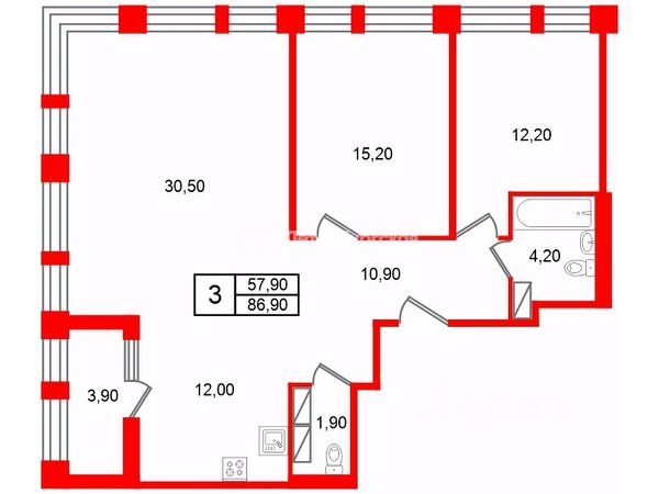 • ✓ В базе Циан 7 3-комнатных квартир на 10 этаже рядом с метро Площадь Мужества