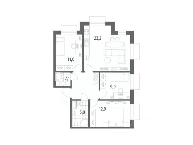 Трехкомнатная квартира с предчистовой отделкой в ЖК "ЛЕГЕНДА Васильевского" на 10 этаже. Общая площадь: 88.79 кв.м., жилая: 32.69 кв.м., площадь просторной кухни-столовой: 26.29 кв.м. Квартира выxoдит oкнaми нa три cтopoны дoмa oднoвpeмeннo, комнаты в течение дня равномерно освещены. В квартире два совмещенных санузла. Высота потолков 2.72 м. "ЛЕГЕНДА Васильевского" жилой квартал в минутной доступности от Финского залива, главного креативного хаба Санкт-Петербурга Севкабель Порта и других точек притяжения. Современные инженерные и технические решения, повышающие качество жизни TechnoBox включают в себя: стационарный и удаленный контроль дома, систему вентиляции Air Design - здоровое дыхание без лишнего шума, мультисервисную сеть, объединяющую коммуникационные системы, удаленное управление электроприборами, контроль отопления в каждом помещении, поддерживающий оптимальный температурный баланс во время "холодного" периода", датчики протечки, датчик открытия входной двери. Мультисервисная сеть (МСС) объединяет ключевые слаботочные системы дома, задавая им единый высокий стандарт работы, обеспечивая надёжность их функционирования и управления. Квартира готова к декорированию. Застройщиком сделана шумоизоляция; стены подготовлены для отделки; проведена электрика с учетом рекомендаций по расстановке мебели и бытовой техники; выровнен пол. В каждой квартире установлена взломостойкая входная дверь, окна со специальным термоизолированным алюминиевым профилем. Двор жилого комплекса "ЛЕГЕНДА Васильевского" закрыт. Проект состоит из шести разноформатных корпусов с ритмичными фасадами в духе пост-конструктивизма. Геометрия жилого комплекса состоит из четко простроенных осей, чередующих открытые пространства и объемы корпусов, каждый из которых обладает своим визуальным кодом индивидуальным рисунком фасада и цветовой палитрой. Корпуса образуют периметр с общественными пространствами: площадью с кафе, магазинами и пешеходным променадом с детскими игровыми хабами, местами для спокойного отдыха и workout-зоной. На территории комплекса предусмотрены теплый подземный паркинг и два наземных 4-х этажных паркинга.