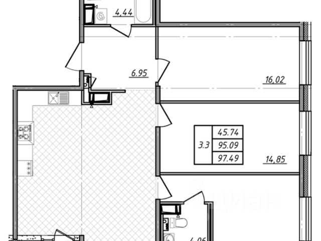 Квартира с тремя спальнями в комплексе "Сампсониевский 32" от LEGENDA на 10 этаже. -Общая площадь: 84.44 кв.м. -Жилая: 33.4 кв.м. -Площадь просторной кухни-столовой: 23.95 кв.м. -Высота потолков 2.7 м. Комнаты изолированные, все окна выходят на одну сторону. В квартире два совмещенных санузла. ЖК "Сампсониевский, 32" квартал бизнес-класса в Выборгском районе Санкт-Петербурга недалеко от набережной Большой Невки и Петроградской стороны. Отличают комплекс каскадные фасады с большой площадью остекления, видовые квартиры с террасами. Современные инженерные и технические решения, повышающие качество жизни TechnoBox включают в себя: стационарный и удаленный контроль дома, систему Air Design, обеспечивающую чистый воздух без лишнего шума, мультисервисную сеть, объединяющую коммуникационные системы. Квартиры сдаются с предчистовой отделкой: выровнены пол и стены, проведена электрика, предусмотрена шумоизоляция, встроенная система вентиляции. В каждой квартире установлена взломостойкая входная дверь, окна со специальным термоизолированным алюминиевым профилем. В ЖК "Сампсониевский, 32" много вариантов планировок: квартиры с террасой, мастер-спальней, ванной комнатой с окном, гардеробной комнатой. Двор закрыт от транспорта, здесь будут зоны с дизайнерским оформлением для игр и отдыха. Срок сдачи 4 квартал 2026 года. В отапливаемом подземном паркинге 298 мест, спуститься туда можно на лифте из своей квартиры. Комплекс находится на границе крупных районов, рядом с набережными, которые ведут в Приморский, Калининский и Центральный районы, а через Сампсониевский, Гренадёрский и Кантемировский мосты можно попасть в Петроградский район. До станции метро "Выборгская" 900 м, до станции метро "Петроградская" 2,6 км. Финляндский вокзал находится в 2,5 км от ЖК, а Западный скоростной диаметр (ЗСД) в 10 км. Рядом с ЖК находится несколько гимназий, общеобразовательных школ и детских садов. Здесь много медицинских учреждений, кафе, ресторанов, торговых центров, гипермаркетов. Меньше чем в 1 км от ЖК Сампсониевский и Выборгский сады, а в 2 км находится Ботанический сад, набережная реки Карповки с качелями и зонами отдыха у воды.