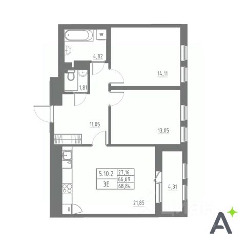 Трёхкомнатная квартира в доме улучшенной планировки, все три комнаты просторны и изолированы, 20, 10 и 19 м2, высокие потолки 2.7 м. Увеличенная кухня за счет коридора - 13 м2 из которой выходит остекленная лоджия.