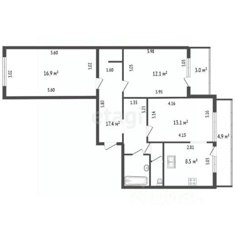 Здравствуйте! Вашему вниманию представляется 4Е-комнатная квартира в лучшем ЖК Приморского района - LEGENDA Комендантского!
