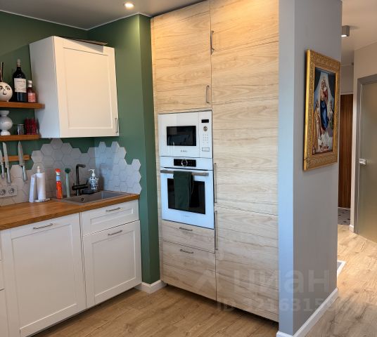- Техника: духовка, микроволновка, индукционная плита Bosch, посудомойка 60 cм Kuppersberg, встраиваемый холодильник Whirlpool