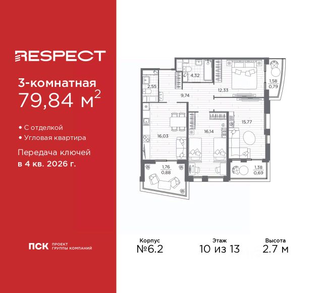3-комн. квартира от застройщика с предчистовой отделкой в ЖК "RESPECT" на 10 этаже. Общая площадь: 94.11 кв.м., жилая: 37.77 кв.м., площадь просторной кухни-столовой: 30.02 кв.м. Угловая квартира, очень светлая, естественная вентиляция при открытии окон. В квартире одна лоджия, два совмещенных санузла. Высота потолков 2.7 м. Квартира будет сдана с отделкой WHITE BOX, в которую включены следующие виды работ: - заливка стяжки; - установлена система отопления квартиры; - подготовлены потолки; - все стены выровнены, загрунтованы и отштукатурены; - электрическая проводка разведена по комнатам. Квартира будет готова к чистовой отделке. Квартира находится в корпусе 5.1. Дом монолитный, одноподъездный, высотой 13 этажей. На этаже 7 квартир. В подъезде 1 пассажирский и 1 грузовой лифт. Начало строительства - 1 квартал 2026 года. Окончание строительства - 4 квартал 2027 года. Оформление сделки по договору долевого участия. В шаговой доступности от жилого комплекса находятся станции метро (расстояние по прямой): "Лесная" (800 м), "Площадь Мужества" (1.4 км), "Выборгская" (1.9 км), также недалеко от этого корпуса расположены станции метро: "Академическая", "Политехническая". Квартал строится на Полюстровском пр, 87, в одной из самых востребованных локаций Петербурга. В 10 минутах пешком - метро "Лесная" и в 10 минутах на транспорте - Петроградская сторона. Высота домов от 7 до 13 этажей. На территории Respect строится школа на 1125 учащихся и детский сад на 240 мест. Запроектированы собственная газовая котельная, закрытая территория, дворы без машин и подземные паркинги с лифтами. Вентилируемые фасады облицованы клинкерным кирпичом. Дома из этого материала служат веками, являясь гордостью хозяев. Дизайн парадных зон и входных групп - сочетание лаконичности отделки и декоративных элементов с текстурами из натурального камня и дерева с приглушенной подсветкой теплым светом. Во входных группах расположены гостевые зоны с мягкой мебелью. Вся территория квартала будет связана единой концепцией благоустройства, разработанной ландшафтным бюро L.BURO. В основе - идея создания увлекательного ландшафтного пространства для насыщенной жизни, включающего в себя пейзажные зоны, современные архитектурные композиции, открытые террасы на стилобатах с зонами отдыха и парклетами, спортивными площадками. Это пространство для людей всех возрастов и различных увлечений. На эксплуатируемой кровле на уровне первого этажа в домах 1 и 4 будут обустроены общественные видовые террасы. В квартале запроектированы внутренние закрытые территории дворов домов без доступа автомобилей и безбарьерная среда для велосипедистов и колясок. Предусмотрены IP-домофония с функцией дистанционного открывания калиток и парадных, а также дистанционный сбор показаний счетчиков и мобильное приложение для жителей. Для безопасности жителей квартала - круглосуточное видеонаблюдение и служба охраны. В каждой квартире предусмотрены внешние корзины для кондиционеров. #2me5fs