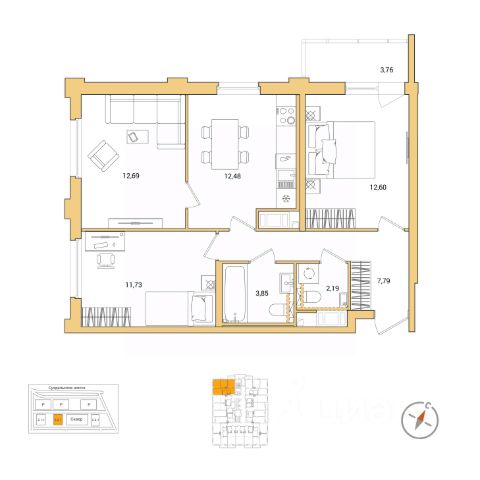 Основное преимущество квартиру - удобная планировка, сочетающая в себе 2 отдельные спальни, просторную кухню, гостиную и 2 санузла, расположенные в разных частях квартиры, что обеспечивает удобство для всех членов семьи.