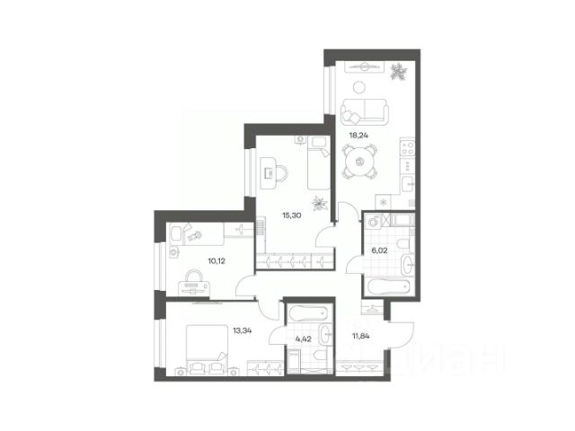 Продается квартира площадью 79.28 м² на 11 этаже 1 секции в Речной квартал от компании ГК "ТРЕСТ". Площадь кухни 18.24 м². Семейный жилой комплекс комфорт-класса "Речной квартал" от Группы компаний "ТРЕСТ" расположен в Невском районе Петербурга на пересечении Октябрьской набережной и Русановской улицы. Первая очередь квартала состоит из трёх корпусов, расположенных лучеобразно, чтобы максимально использовать естественное освещение и обеспечить видовые точки на локацию. Проект выделяется современными архитектурными решениями и дизайном. Концепция развития и благоустройства придомовой территории разделена на зоны отдыха, досуга и игровые площадки с учетом возраста и потребностей детей и взрослых. Квартал рассчитан на семейных покупателей, поэтому здесь нет студий: только одно-, двух- и трёхкомнатные квартиры. В проекте представлены квартиры с кухнями-гостиными, мастер-спальнями, гардеробными и кладовыми. "Речной квартал" - современный жилой комплекс с разнообразным благоустройством придомовой территории, просторными европланировками, закрытой охраняемой территорией и подземными паркингами. На территории комплекса уже функционирует детский сад на 110 мест. Также в квартале будет построена общеобразовательная школа на 475 мест с бассейном и стадионом. Открытие школы запланировано на 2029 год. Квартиры в ЖК "Речной квартал" можно приобрести с готовой отделкой от застройщика. Для покупателей квартир предусмотрено два варианта чистовой отделки "Ваниль" и "Шоколад". Чистовая отделка в квартирах ЖК "Речной квартал" предполагает монтаж натяжных потолков, укладку ламината, оклейку стен обоями под покраску, установку светильников и межкомнатных дверей. При отделке новой квартиры применяются качественные, натуральные и экологичные материалы, монтируется стильная импортная сантехника европейских брендов. В объявлении указана стоимость квартиры при 100% оплате. При других формах оплаты - базовую стоимость квартиры уточняейте на официальном сайте компании или у менеджера отдела продаж. Застройщик АО "Специализированный застройщик "Строительный трест".