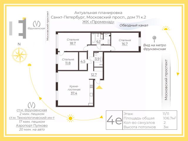 • ✓ В базе Циан 4 3-комнатных квартир на 11 этаже рядом с метро Технологический институт