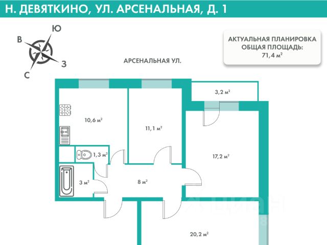 Два санузла: 5,3 м² (с ванной) + 1,8 м² (гостевой). Утренние сборы без очередей; прачечный модуль — в большом; порядок держать проще.