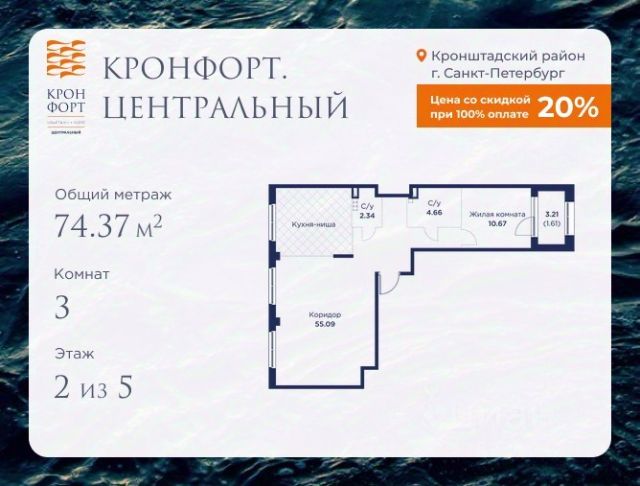 • ✓ В базе Циан 1 3-комнатных квартир на 12 этаже рядом с метро Площадь Александра Невского