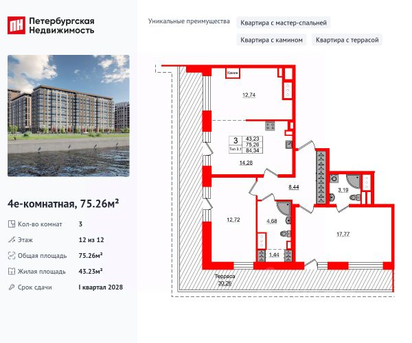 Продается просторная, семейная 3-комнатная квартира от застройщика в жилом комплексе "Сэтл Ривьера" в активно развивающимся Невском районе. До метро можно добраться на транспорте всего за 10 минут. Уникальная особенность этой квартиры возможность установить настоящий дровяной камин, который создаст атмосферу загородного дома. Мастер-спальня с собственной ванной комнатой. Самое приватное пространство в вашей квартире. Окна от пола до потолка позволят безгранично любоваться видами Петербурга, наполнят комнату солнцем и светом! Сауна в ванной комнате. Расслабьтесь и восстановите силы, как в СПА-салоне. Открытая терраса! Завтракайте или занимайтесь спортом на свежем воздухе! Уникальная, функциональная европланировка, большая кухня-гостиная 11.38 м², просторная прихожая 15.25 м². Общая площадь квартиры - 92.82 м², жилая 38.66 м², высота потолка 3.04 м. Квартира продается с отделкой "Норд Лайн серый плюс". Что особенного в ЖК "Сэтл Ривьера"? • Первая береговая линия Невы. 5 км до центра Петербурга • "Активити парк" - пространство для занятий спортом и отдыха. "Ривьера парк" с променадом и панорамной ротондой • Масштабные дворы 10 000 кв.м. с авторским ландшафтным дизайном • Двухуровневые единые входные группы • Видовые квартиры с террасами, каминами и саунами